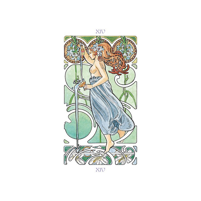 ART NOUVEAU TAROT GRAND TRUMPS-utgåvan uppgraderas till slut till en bättre förpackning med en hård låda och bättre instruktioner. Art Nouveau är en av de vackraste och mest sålda Tarotlekarna någonsin. De 22 korten har blommiga bilder med mjuka och eleganta linjer som illustrerar den stora arkanan. Bilderna är vårliknande med mjuka färger och graciösa figurer.