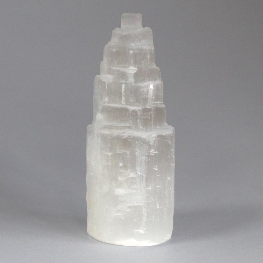 Lyft energin i ditt hem med detta vackra Selenit Torn, format för att påminna om ett naturligt kristalltempel. Selenit är känd för sin klara, rena lyster och sin förmåga att skapa en harmonisk och lugnande atmosfär.