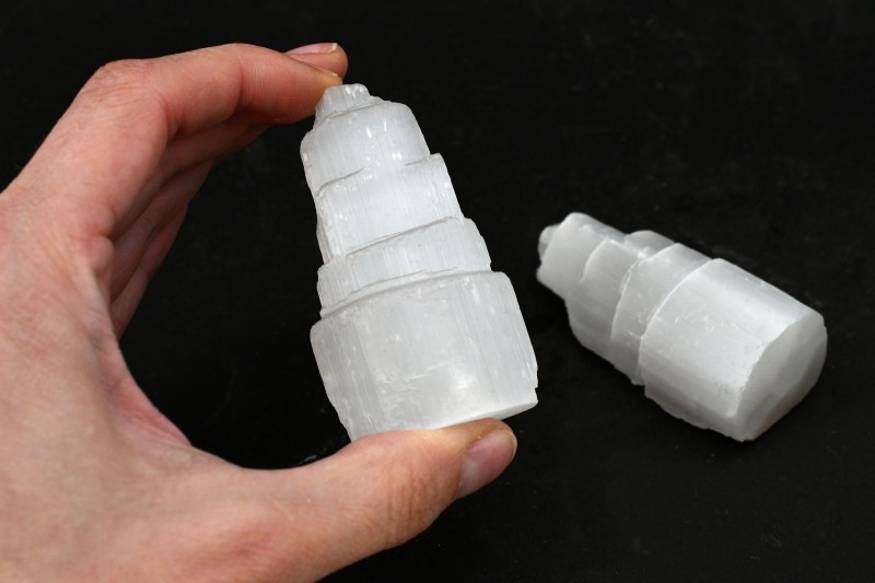 Rening av energi: Selenit anses kunna rensa tunga eller stillastående energier och skapa balans i rum och runt andra kristaller.